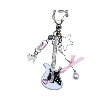 Llavero colgante de guitarra eléctrica con cuentas hecho a mano, hebilla de bolsa de aleación de estilo de dibujos animados encantador con impresión UV, elegante a la moda