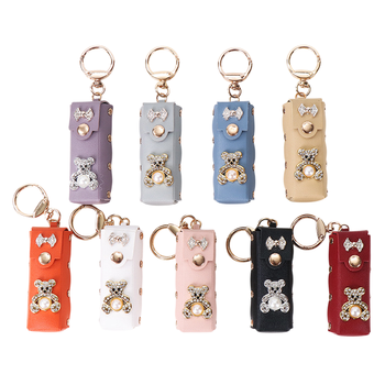 Nuevo oso pequeña fragancia estilo al aire libre señora lápiz labial monedero con diamante lápiz labial bolsa colgante luz llavero llaveros